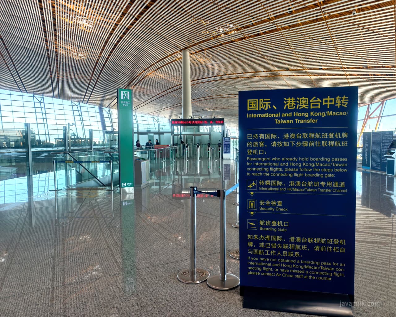 Tips Panduan Transit di Bandara Beijing Capital Airport (PEK) Published on 28 January 2026 By Alisanta Karena wisata ke China lagi booming, namun informasi yang tersedia tidak untuk turis Indonesia, saya menulis banyak artikel yang mungkin dapat membantu Anda. Kali ini tentang tips transit atau transfer pesawat di Bandara Beijing. Ada 2 Bandara di Beijing, yang lebih dekat pusat kota adalah Beijing Capital Airport (kode PEK), dan yang lebih baru dan lebih jumbo adalah Beijing Daxing Airport. Nah, artikel ini khusus Beijing Capital Airport ya, tapi secara umum prosesnya sama. International to International Jika Anda mengambil tiket Air China rute Jakarta - Incheon Seoul atau Jakarta - Jepang (Osaka, Tokyo,dll) maka proses transit menjadi lebih simpel karena tidak perlu melalui imigrasi di Bandara China. Ini dengan catatan Anda akan waktu transit singkat ya, misalkan kurang dari 6 jam. Di atas 8 jam Anda bisa coba peruntungan untuk keluar dan main ke kota Beijing. Jika waktu connecting antar pesawat 1 jam masih aman, karena proses transit Internasional to Internasional cukup cepat di dalam terminal yang sama. Saya sarankan Anda pilih yg minimal 2 jam supaya tidak terlalu khawatir. Ini contoh saya dikasih flight yang mepet-mepet. Pergi pulang. Untung selamat semua. Bagasi otomatis akan di-transfer, sesuai dengan yang tertulis saat booking tiket ini di Trip.com Begitu Anda mendarat dan keluar pesawat di PEK Terminal 3 (semua penerbangan international biasa di sini), cari papan petunjuk "International/HK/Macao Transfer". Jika Anda dapat gate paling jauh, mungkin perlu jalan sekitar 5 menit dengan multiple travelator baru tiba di lokasi transfer ini. jangan sampai ketemu counter imigrasi yang banyak, karena berarti sudah terlewat. Gate transfer ini relatif kecil tapi mestinya terlihat. Sampai di sini, kita scan passport dan boarding pass di automatic gate. Lalu akan antri melewati validasi petugas yg memeriksa validitas boarding pass. Prosesnya tidak lama, lalu lanjut security check. Handcarry kita akan diperiksa termasuk powerbank. Jangan khawatir karena ini I-to-I, tidak wajib powerbank sertifikasi CCC. Namun jika Anda baru mau beli powerbank, di jaman sekarang pastikan ada sertifikasi tersebut. Proses dari transfer gate hingga lewat security mestinya tidak lebih dari 5-10 menit. Setelah itu kita akan turun eskalator dan kembali sudah berada di area keberangkatan. Tinggal cari nomor gate keberangkatan. Saya buatkan videonya jika Anda ingin versi video. International to Domestic Jika Anda mempunyai penerbangan lanjutan ke domestik-nya China, maka proses akan menjadi lebih panjang. Secara singkat: keluar pesawat - lewat immigrasi - ambil bagasi - (ambil boarding pass baru) - checkin bagasi lagi - security check - baru menuju gate selanjutnya. Karena proses yang lumayan panjang, pastikan Anda memilih flight dengan connecting time lebih dari 2 jam. Waktu saya dapat tiket dengan connecting 1 jam Step 1: Tiba di Beijing Capital Airport - jalan terus dan cari papan Domestic Transfer. Step 2: Clear Immigration Siapkan passport dan sudah isi online arrival card. Antrian imigrasi mungkin kalau beruntung ya cepat. Tapi expect sekitar 30 menit - 1 jam. Step 3: Pindah Terminal Karena Terminal 3 kita tiba di area International (tepatnya terminal 3E), dan harus collect baggage dulu, maka kita harus naik kereta antar terminal menuju Baggage Claim area di 3C. Walaupun misalkan penerbangan domestik Anda di Terminal 3 juga, T3 itu dibagi menjadi T3C, T3D, T3E yang dihubungkan oleh kereta automated people mover (APM). Step 4: Print Boarding Pass lanjutan dan Checkin Bagasi Selanjutnya kita checkin bagasi untuk penerbangan domestiknya. Counternya tidak sama dengan counter depature (karena jauh). Ada counter checkin yang lebih dekat, tidak jauh dari tempat ambil bagasi. Step 5: Security Check dan Lanjut ke Boarding Gate Seperti penerbangan biasa, begitu selesai check-in kita harus clear airport security check untuk barang bawaan hand-carry. Proses ini bisa memakan waktu 30 menit. Pastikan powerbank yang Anda bawa ada logo CCC untuk penerbangan domestik China. Tanpa logo itu, auto di-sita (dibuang). Tergantung lokasi keberangkatan, Anda mungkin perlu naik kereta antar terminal lagi untuk menuju gate. Intinya ikuti terus papan petunjuk jalan. Domestic to International Rute connecting Domestik ke International kurang lebih sama seperti I-to-D cuma dibalik. Dan kalau semua leg adalah Air China, bagasi tidak perlu diambil karena otomatis di-transfer. Jadi kita melakukan checkin secara domestik, masukkan bagasi dan akan dapat 2 boarding pass langsung. Lalu saat tiba di Beijing, kita harus melewati imigrasi (exit stamp), dan security check. Estimasi perlu 30 menit - 1 jam untuk semua proses ini. Penerbangan International berada di Terminal 3E, jadi sambung dengan kereta antar terminal (APM) baru Anda menuju gate keberangkatan. Jika ada waktu terminal 3E ini terdapat beberapa toko duty free, juga restoran dan kopi (Starbucks dan Costa Coffee) untuk melewatkan waktu. Tags: china asia Komentar Jepang Australia Thailand Korea Artikel Terbaru Lainnya Baca juga artikel dan tips wisata terbaru. Wed 28 January 2026 Panduan Transit di Bandara Beijing Capital Airport (PEK) Tue 11 November 2025 Benchakitti Park - Surga Pelari di Bangkok Sun 22 June 2025 Cermati Bebas Visa Transit China (Update 2026) Tentang Javamilk Cari artikel lama? Ada di Archives